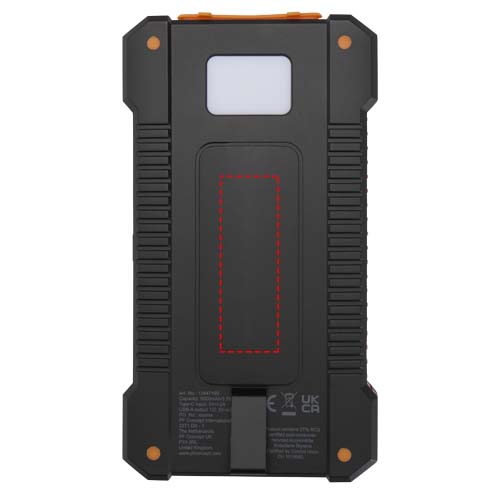 Die Altair 5.000 mAh Solar-Powerbank aus recyceltem Kunststoff ist robust und benutzerfreundlich konzipiert. Sie verfügt über zwei USB-A-Ausgänge sowie einen Type-C Ein-/Ausgang für flexible Lademöglichkeiten. Sie verfügt über ein robustes Gehäuse, einen abnehmbaren Clip zur einfachen Befestigung sowie eine integrierte Taschenlampe. Die Anschlüsse sind sicher hinter einer Silikonkappe verstaut. Mit Solaraufladung und einer LED-Anzeige für den Ladezustand ist diese Powerbank der ideale Begleiter für Outdoor-Abenteuer.