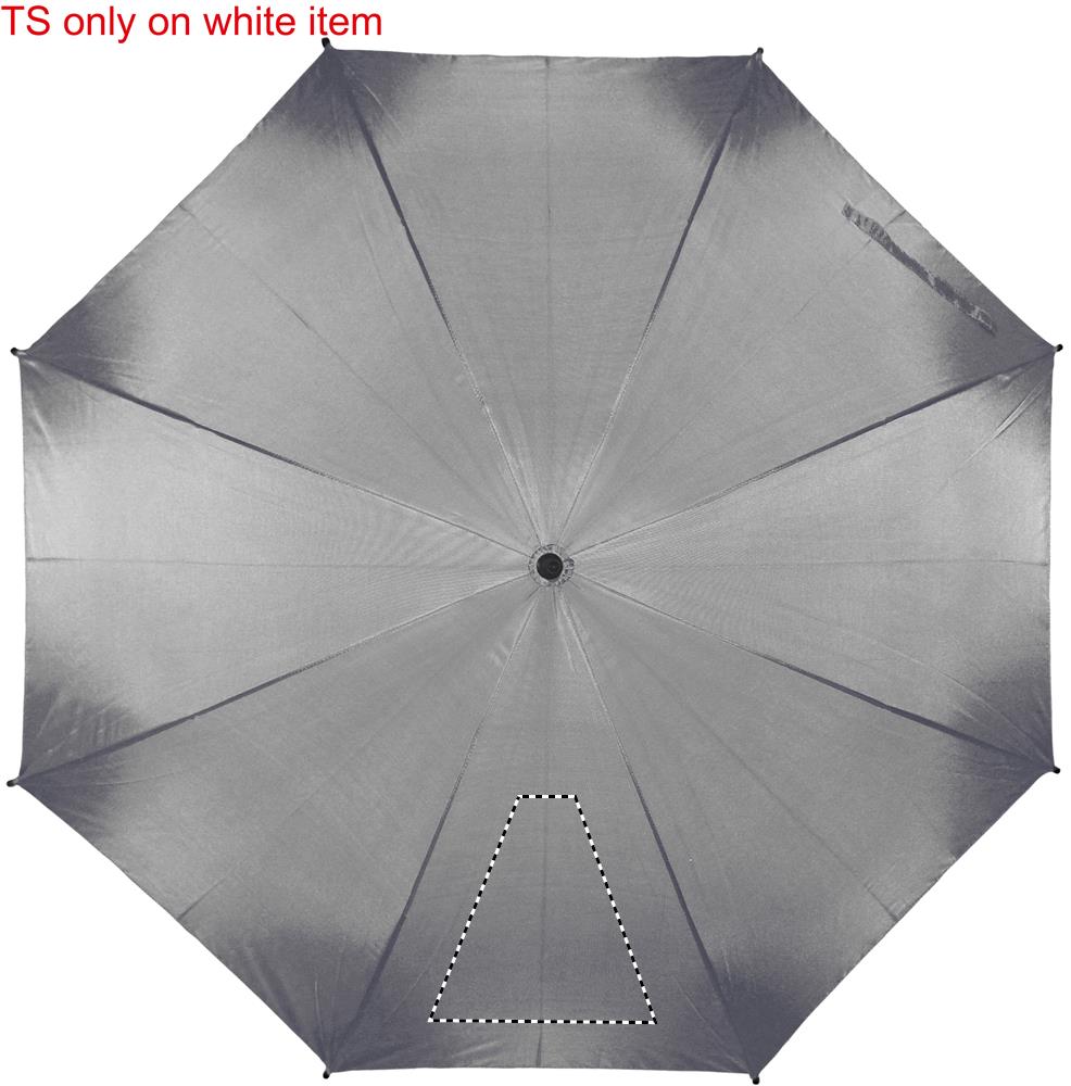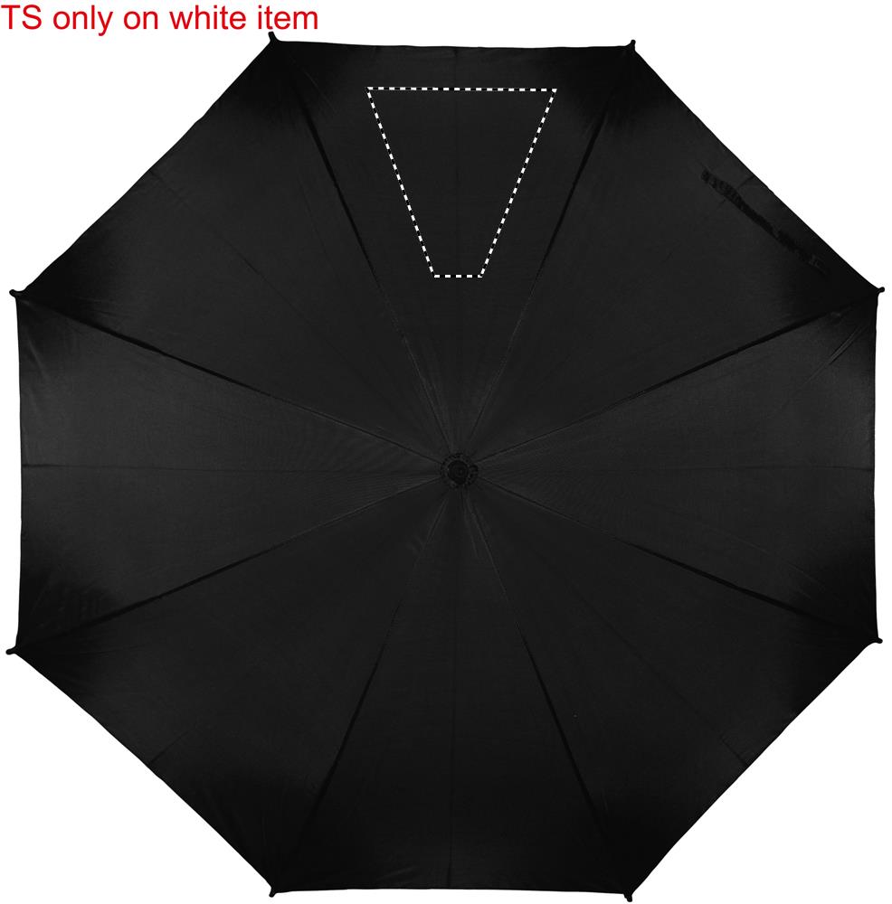 23'' Regenschirm aus 190T Pongee. Stock und Schienen aus schwarz überzogenem Metall, Spitzen aus schwarzem Kunststoff. Schwarzer EVA Griff. Automatische Öffnung, manuelle Schließung.