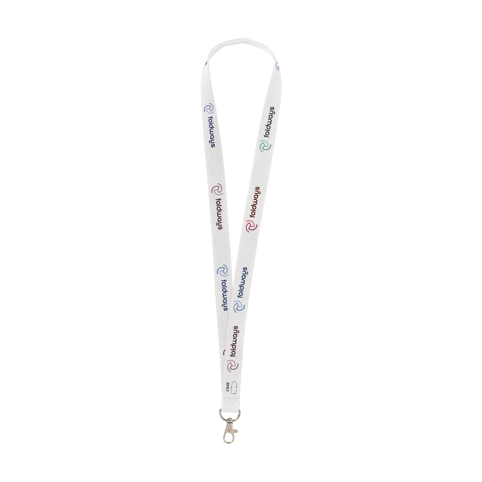 WoW! Stark gewebtes RPET-Polyester-Lanyard (hergestellt aus recycelten PET-Flaschen). Wird mit einem Metallkarabiner geliefert. Inklusive vollfarbigem Sublimationsdruck. Hergestellt in Europa.