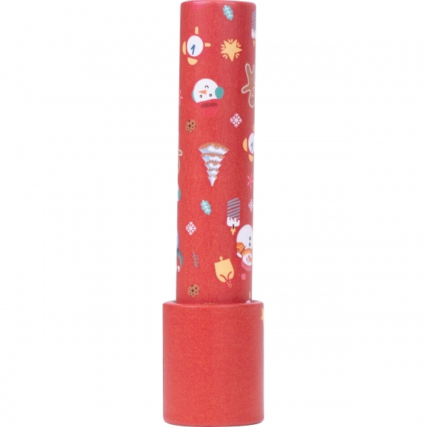 Kaleidoskop mit weihnachtlichem Design. Jede Drehung erzeugt neue, faszinierende Formen und Farben. Ihr Logo wird mittels Etikett auf der Vorderseite des Kaleidoskops angebracht.