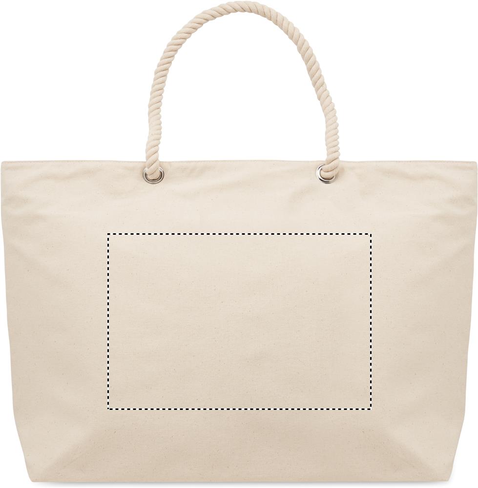 Zippered beach cooler bag in cotton with cord handle. 220 gr/m². 2mm aluminium foil insulation.