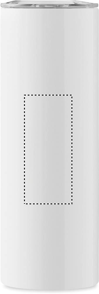 Double wall stainless steel tumbler and PS lid with mouthpiece with special coating for sublimation print. Capacity: 590 ml.