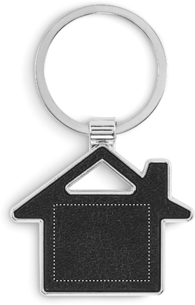 House shaped metal key ring with recycled PU leather inlay.