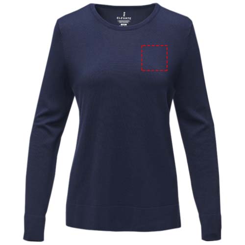 The Merrit women's crewneck pullover – a fusion of timeless style and comfort. Its classic crew neck is complemented by flat knit rib details on the collar, cuffs, and bottom hem, providing a sophisticated charm suitable for any occasion. Made from viscose and nylon blend in a 12-gauge flat knit, it offers a blend of softness, durability, and a lightweight feel. Elevate your wardrobe with the versatile Merrit pullover that embodies elegance and quality. This pullover is designed with a fitted shape for a feminine look.