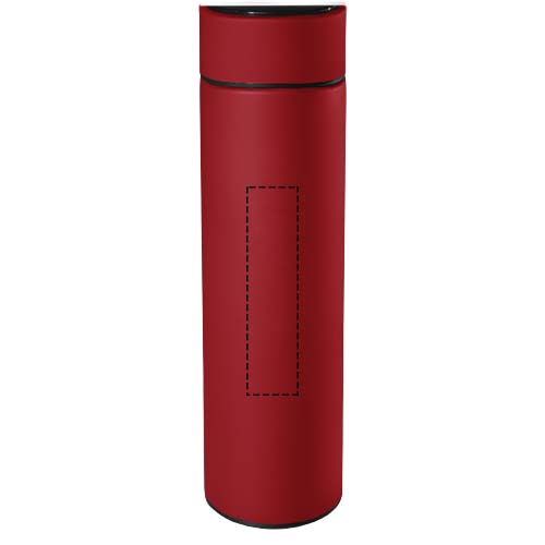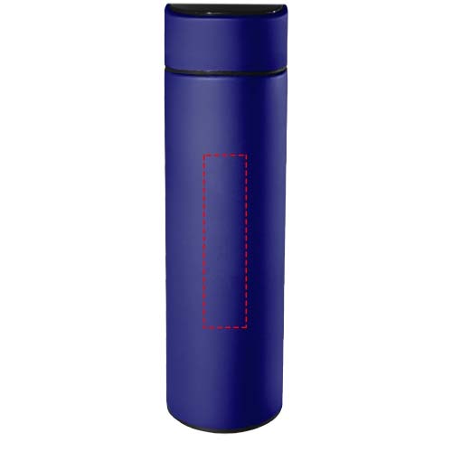 Double-walled 500 ml insulated stainless steel bottle with antibacterial treatment and a temperature sensor. Thanks to the "Touch & Light" system, the temperature of the drink is displayed on the bottle cap (in Celsius). Suitable for both hot and cold drinks. Delivered in a cylindrical gift box made of recycled paper. Size: Ø 47 x 225 mm. Battery included: CR 2450 (3V). Battery cannot be replaced. Can display temperature 20.000 times.