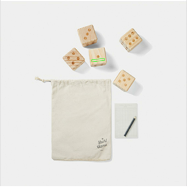 The outdoor yacht game is the classic dice game that is perfect for lovely outdoor days. The goal of the game is to get the highest possible score by rolling and combining the dice in different ways. The game is easy to learn and can be played by all ages. 5 dice, measuring 7x7x7cm, a notepad and pencil is included. Packed in a cotton bag. Manual included. All wooden parts are crafted from high-quality FSC®-certified pinewood, ensuring wood from responsibly managed forests.
