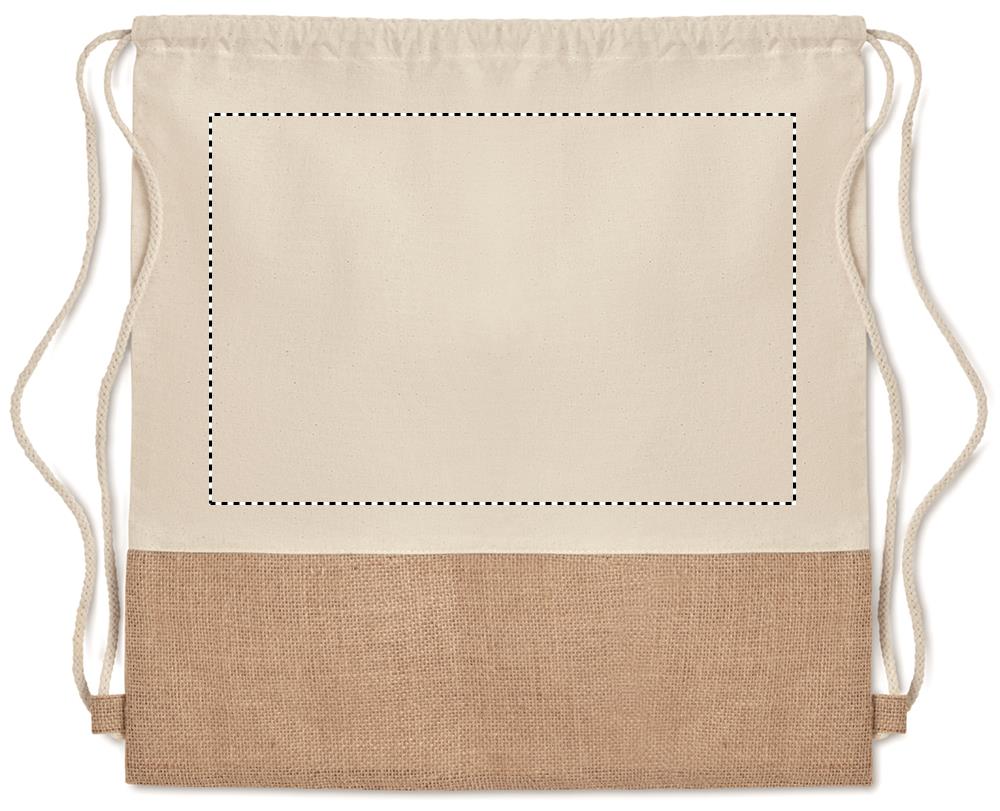 Toimsest puuvillasest nööriga kott džuudist detailidega. 160 gr/m².