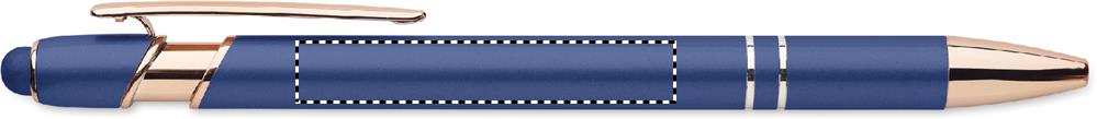Taaskasutatud alumiiniumist tõukepliiats roosa kuldsete detailidega. Sinine tint.