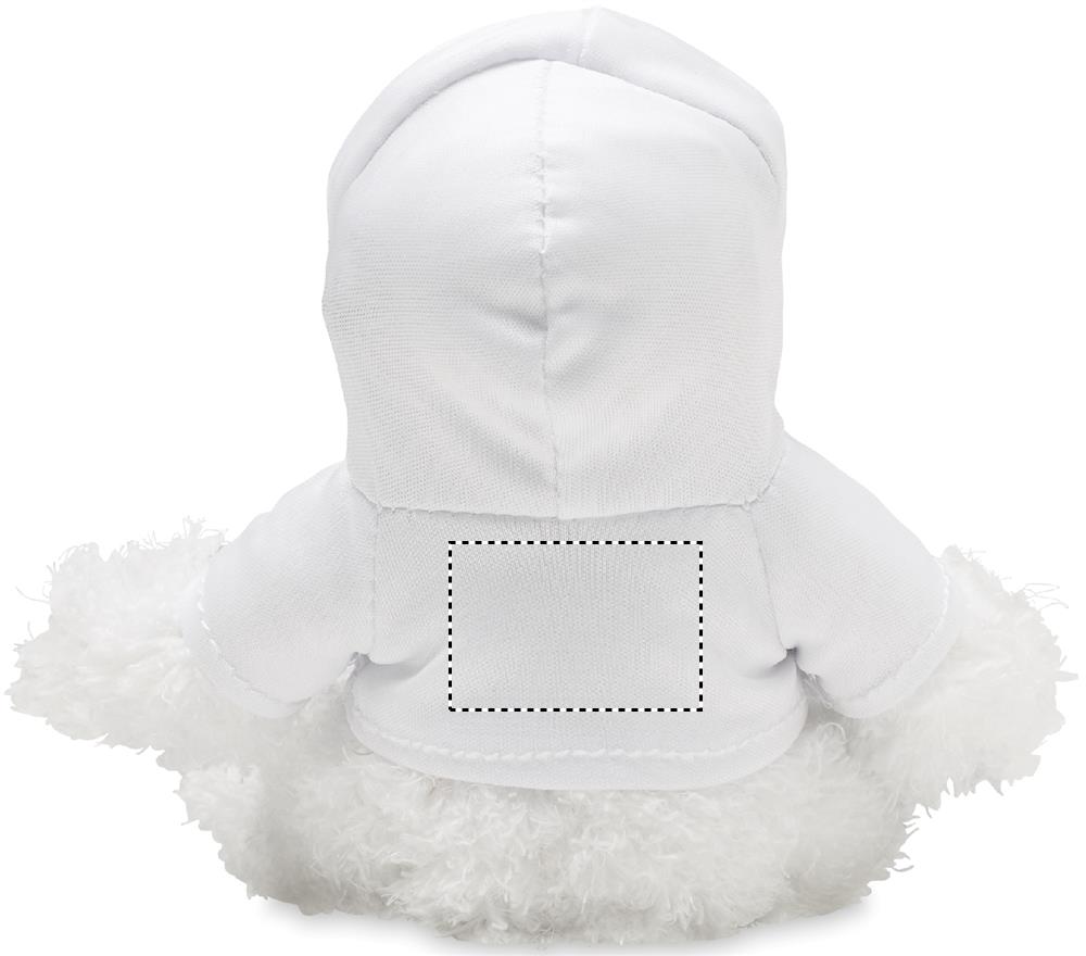 Lehmä pehmolelu, jolla on hupullinen paita. Ihanteellinen sublimaatiopainatusta varten.