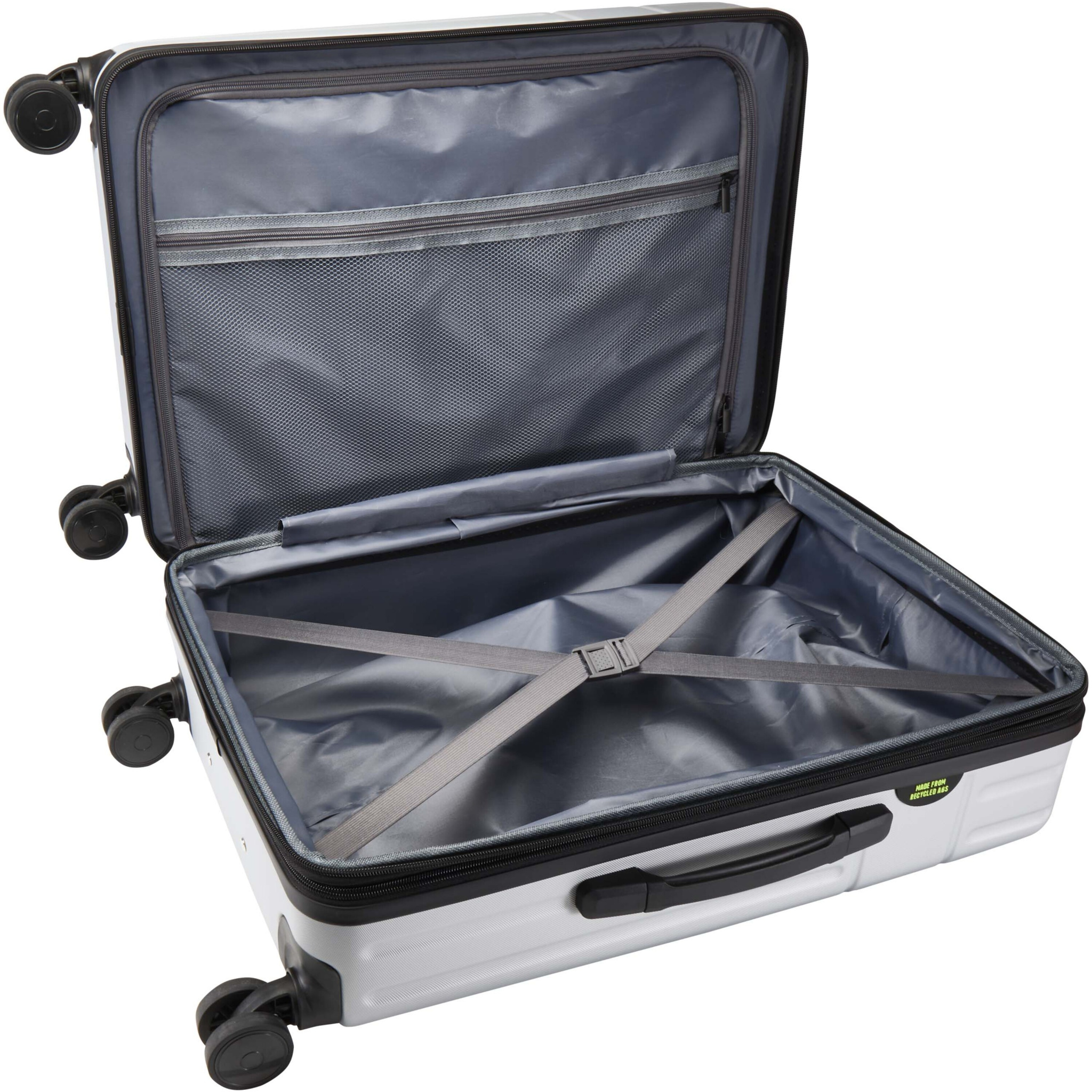 Rover 70 litran ja 24 tuuman GRS-kierrätetystä materiaalista valmistettu laajennettava vetolaukku, Hopea