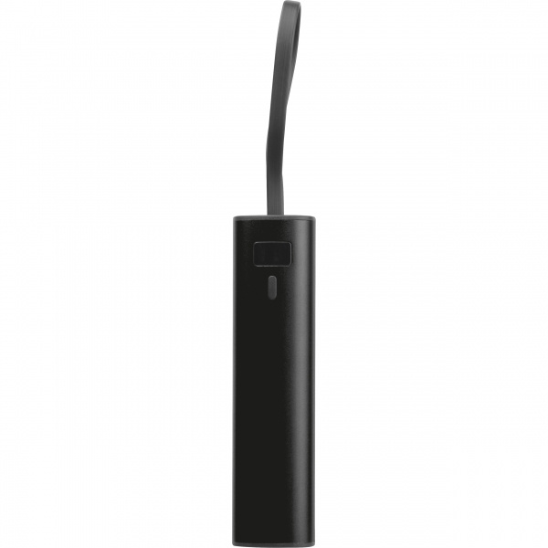 Alumīnija pārnēsājamais akumulators ar 5000 mAh litija jonu akumulatoru, uzlādes līmeņa displeju un integrētu USB-C uzlādes kabeli. Komplektā ietilpst 30 cm garš A tipa uz C tipa uzlādes kabelis. Jūsu logotips ir iegravēts zem displeja, izmantojot lāzergravējumu.