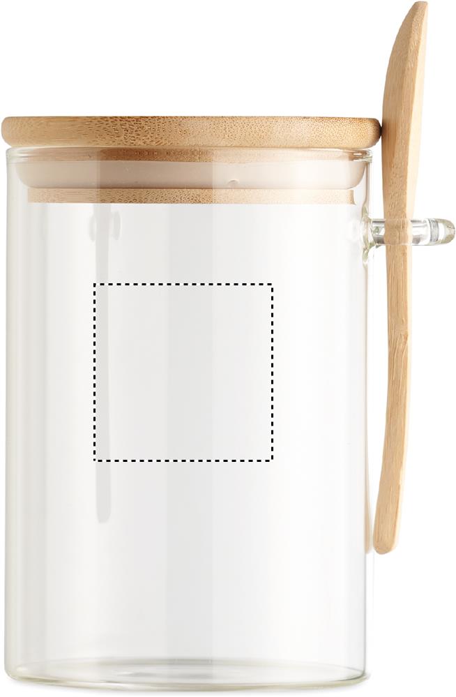 Банка для хранения из боросиликатного стекла с бамбуковой крышкой и ложкой. Емкость: 600 мл.