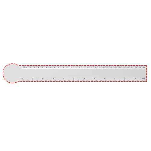 Линейка из твердой переработанной пластмассы в форме круга с разметкой в сантиметрах или дюймах.